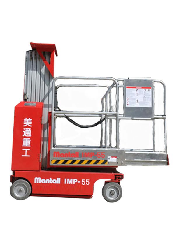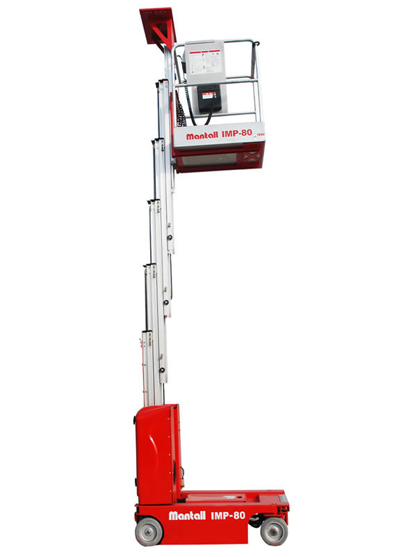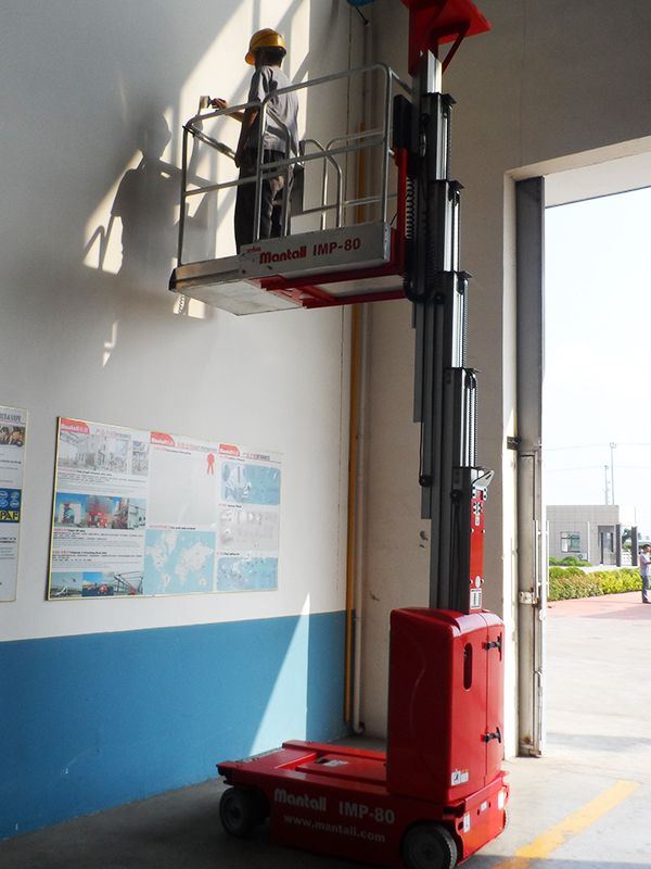 Mantall IMP series vertical mast lifts are a type of single mast self-propelled aerial work platforms that can improve your working efficiency and enhance productivity in the workplace. The compact structure and small size of this vertical mast lift make it easy to set up and pass through narrow aisles and doorways, offering a great convenience to your outdoor or indoor applications such as warehousing, inventory management, transporting, stock-picking, etc.