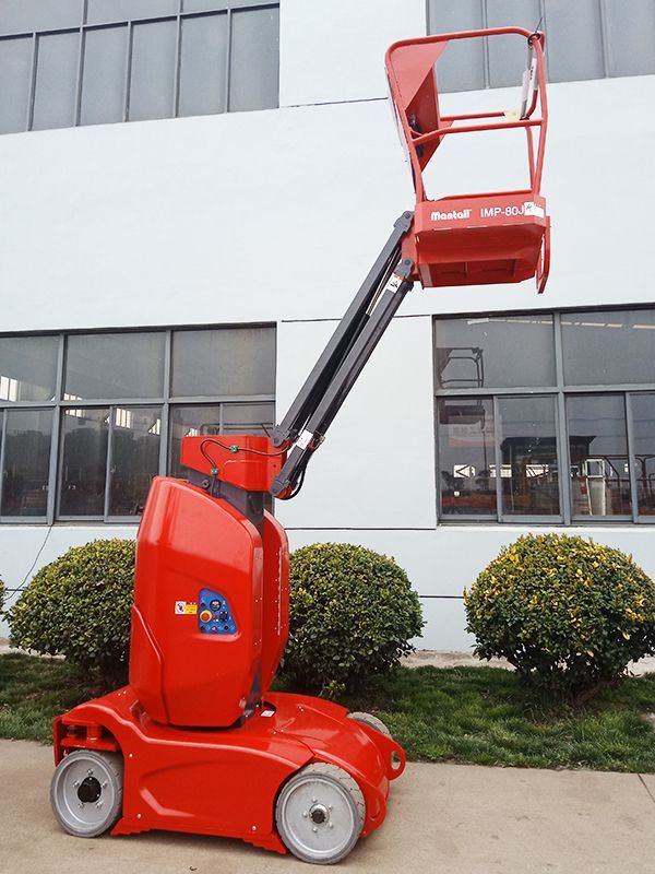 IMP-J series vertical mast lifts are an aerial work platform intended to provide access to high reaching tasks in narrow aisles and confined spaces. Built with compact and lightweight structure, these vertical mast lifts deliver an exclusive maneuverability and portability for vertical aerial operations. They also offer exceptional operational capability with a robust welded mast that is made of high strength alloy steel, providing maximum working height up to 10 meters and an outreach of 3.2 meters. Our IMP-J series vertical mast lifts are equipped with newly developed dual DC motor coupled with high torque reducer, ensuring less power consumption and greater torque for stable lifting and fast traveling. The streamlined design gives the vertical mast lift a superior look, distinguishing it from other similar aerial work platforms.