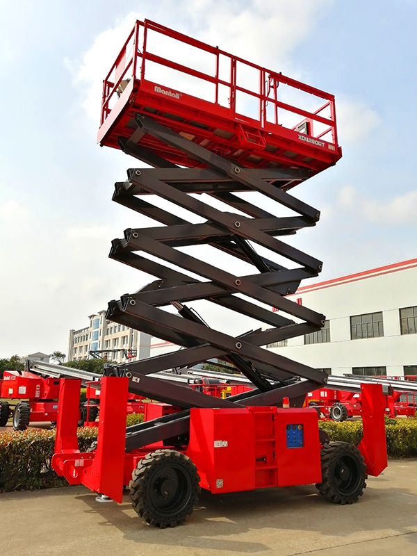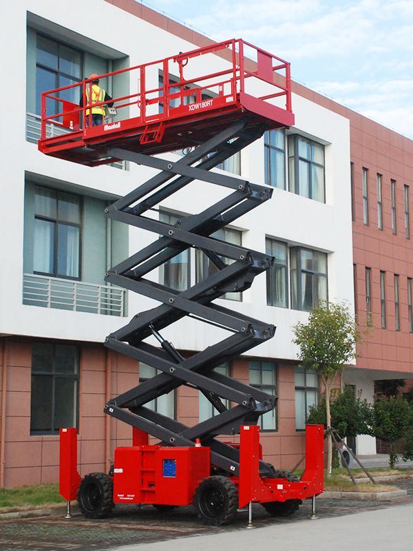 Mantall XDW series self-propelled rough terrain scissor lifts are a type of aerial work platform that allows to carry up to 3 operators, with the maximum capability of 1000kg. Characterized by the emergency device, scissor lift is capable of lowering to the ground without electrical power. This self-propelled rough terrain scissor lift can also be moved by the emergency towing to ensure operators’ safety.