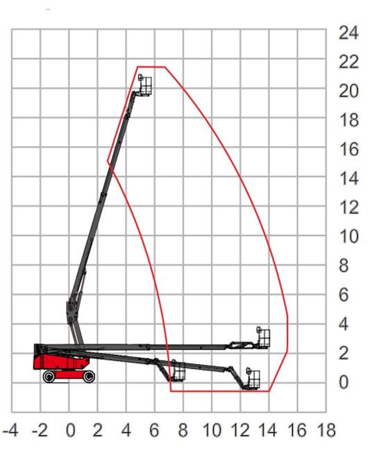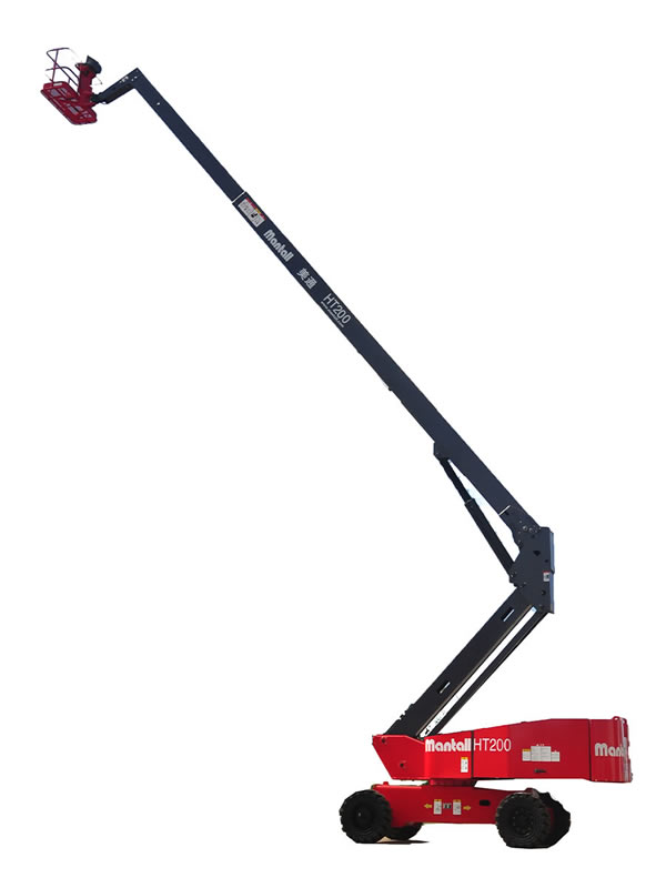 Mantall HT200/HT215J self-propelled telescopic boom lifts are designed to lift heavy loads of 230kg to working heights of up to 21.5m, and provided with a large platform that can accommodate up to three workers with tools. The extended outreach and 360-degree turntable rotation offer excellent flexibility for difficult jobsite applications. The self-propelled telescopic boom lift can perform various lifting tasks in limited spaces and is able to accommodate various rough terrains thanks to the variable modes of traveling speed.