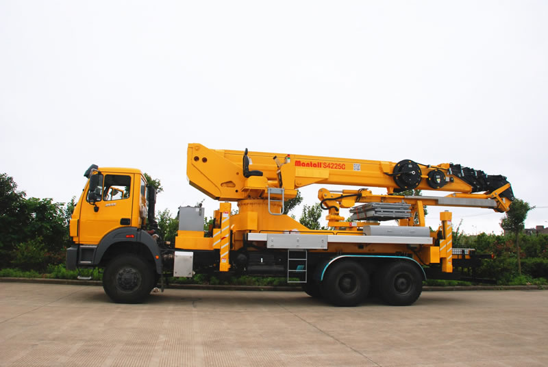 Mantall S series truck-mounted platforms are provided with a range of options to meet individual customer meeds regarding drive system, platform dimensions, components or other specific functions. They allow deployment in a variety of tasks including shipbuilding, firefighting, telecom connection, street light installation, signage installation, etc.