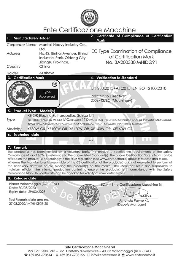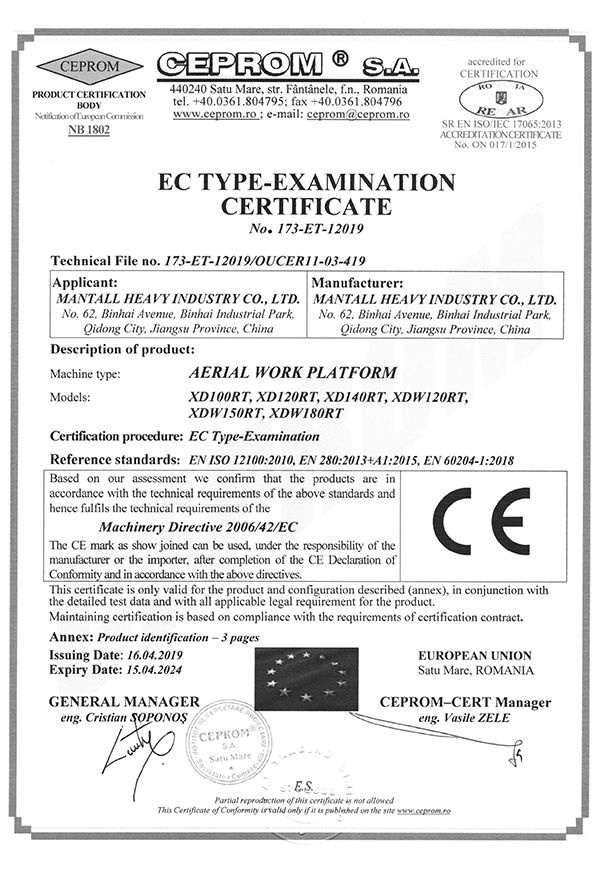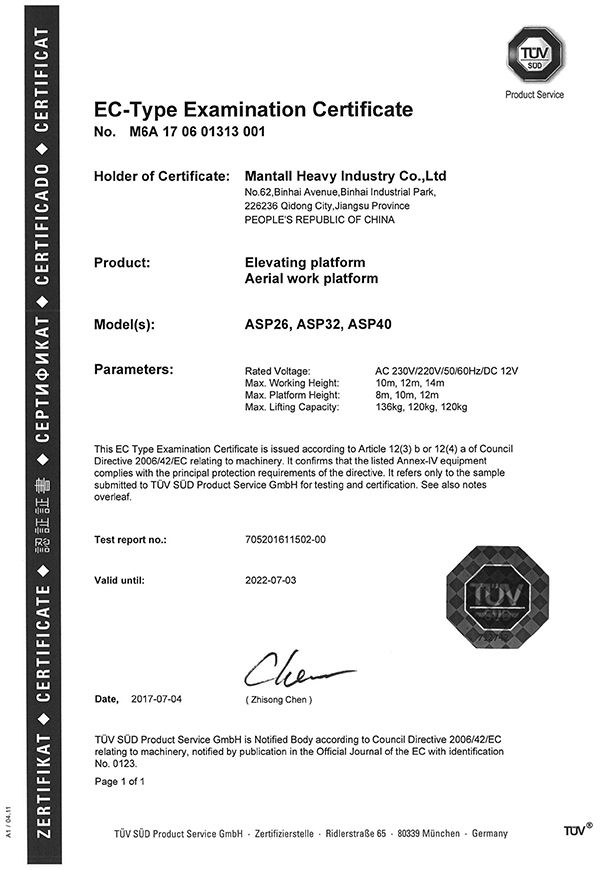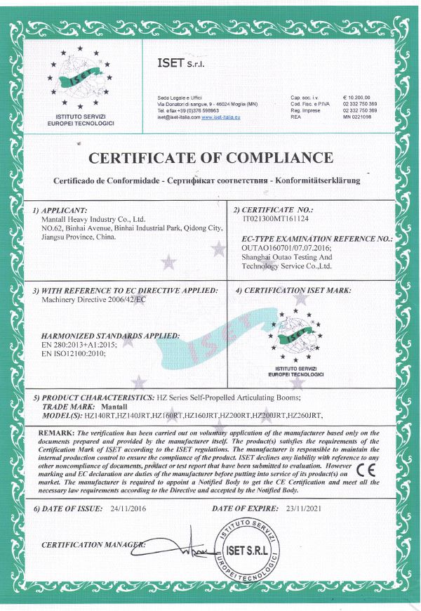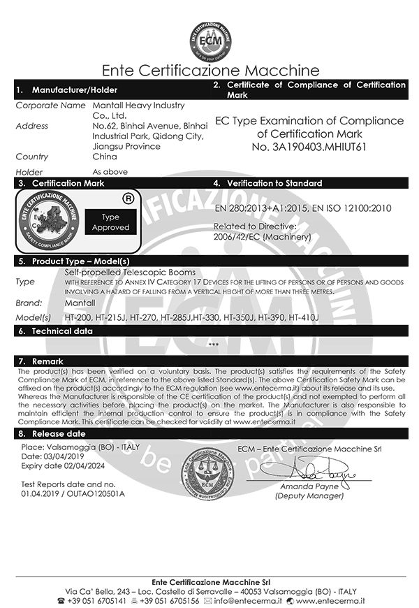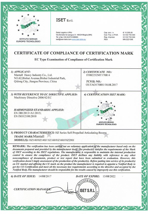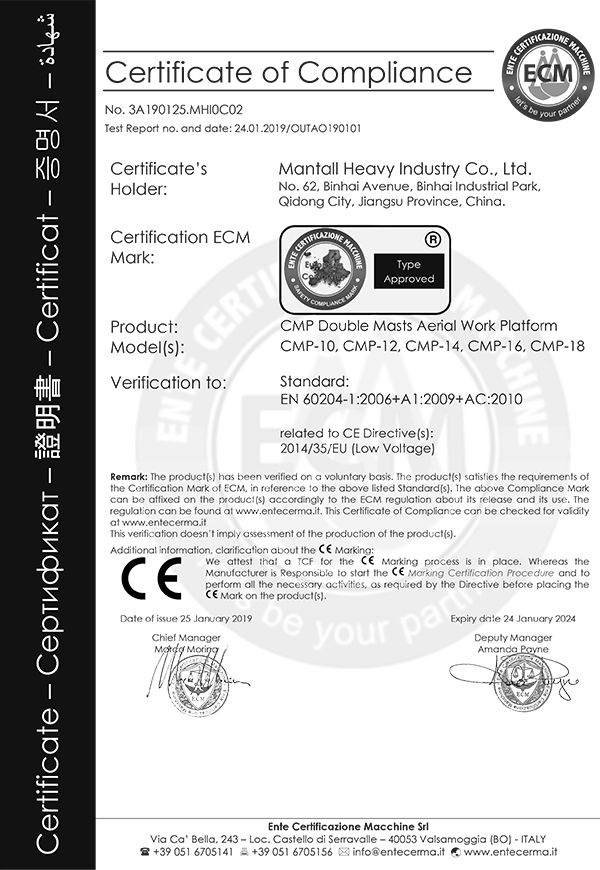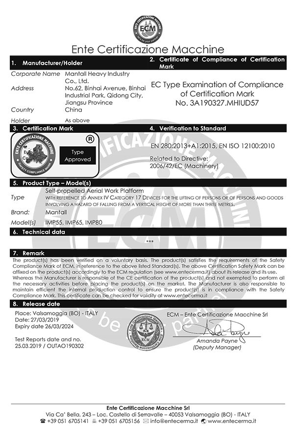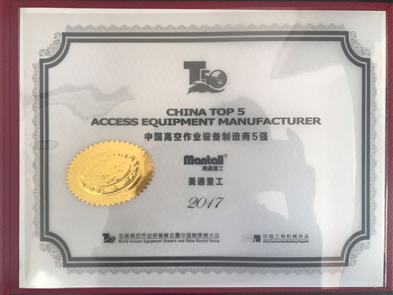 Mantall's goal is to assist customers in satisfying their needs, enhancing working efficiency and lowering management costs. With that in mind, we operate the business diligently, regard the quality as the basis for company's longevity and believe that the innovation is the key to lasting success, aiming at providing safe, reliable and efficient aerial lift equipment. We have received numerous awards as a result of the efforts of every member of our staff. As an aerial lift equipment manufacturer, we have been pioneering innovative solutions and products in the aerial work platforms. We will continue to work hard to evolve each day, and establish ourselves as an industry-leading aerial work platform manufacturer and supplier to serve customer globally.